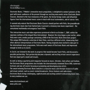 Comes in standard clear 2 media jewel case with 16 page booklet Ⓟ&Ⓒ 2009 Yello, under exclusive license to Universal Music Domestic Pop, a division of Universal Music GmbH. Made in the E.U. All songs published by Warner/Chappell Music GmbH except tracks CD-5, CD-10, CD-13, DVD-2, DVD-8 co-published by Fanfare Musikverlag/Global Chrysalis. Till Brönner appears courtesy of Universal Music Classics & Jazz, a division of Universal Music GmbH Dorothee Oberlinger courtesy of DHM/Sony Music Germany. Release seems to be only available in Switzerland. DVD Region is "0". While the disc is PAL formatted it may play back on some NTSC DVD players.