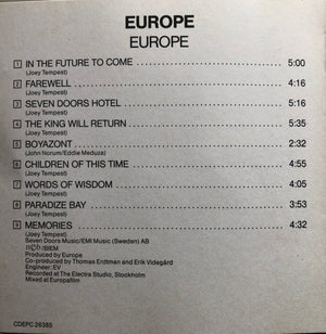 Released in a standard black tray jewel case, with a 12-page booklet. Booklet: .../EMI Music (Sweden) AB Recorded at The Electra Studio, Stockholm Mixed at Europafilm Tray card: ℗ 1983 ... © 1983 ... Printed in Holland Inside tray card: (09-026385-10) CD rim text: Manufactured by CBS/Sony Inc. In Japan For a similar version manufactured by Epic/Sony Inc., see [r=4770377.