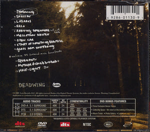 Audio Tracks (48K/24-Bit): DVD-A 5.1 Surround DTS 5.1 Surround PCM 2.0 Stereo Tracks 10-12 are 'Exclusive DTS Surround Music Bonus Tracks'. Track 13 is a hidden track (Easter Egg): Highlight (but don't select) the "Notes" on "Extras"-menu, press arrow up on your keyboard or remote control. The hidden track link should pop up now! DVD Bonus Features: Bonus Tracks • Album Trailer • Photo Gallery • Lyrics • Links • Notes Recorded in England between March-Oct 2004 at No Man's Land, The Artillery, Bourne Place, New Rising, RAK, Astoria, and Livinstone. Some elements retained from demos recorded 2003-04. Published by Warner-Tamerlane/BMI Design by Aleph. Management by Acme Music. Booking by The Agency Group. This recording makes extensive use of Line 6 modelling guitars, effects, and amplifiers, and software by Native Instruments. Richard Barbieri uses the Roland V-Synth series. Gavin Harrison exclusively uses Sonor Drums, Zildjian Cymbals, Vic Firth sticks, and Hardcase. Mastered at Sony Studios NYC. Authoring by DVD Labs, Cambridge MA. www.dtsEntertainment.com www.porcupinetree.com www.deadwing.com 2005 Lava Records, LLC. Produced by Digital Theater Systems, Inc. under exclusive license.