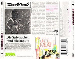 This is Official Release #7. 2012 ZAPPA remaster released for the first time on CD after a digital release on Mothers Day 2009. "Mothermania was originally released on Vinyl in March, 1969. (All tracks recorded 1966-1967-1968) All selections in this album have been previously released in the Mothers Of Inventions albums Freak Out!, Absolutely Free & We're Only In It For The Money. All tracks stereo except Mother People & Idiot Bastard Son. All mixes are exclusive to this release except Tracks 1, 3, 4, 9 & 11. Track 4 is an exclusive edit by FZ and as such, a derivative work of the original."