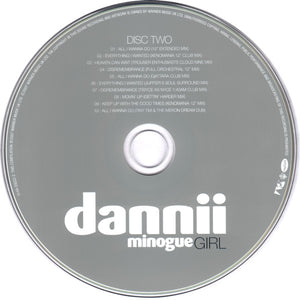 Tracks 1-1, 2-1, 2-5 and 2-10 [published by Warner Chappell Music Ltd. Track 1-2 [published by Warner Chappell Music Ltd. Additional production and final mix for Rive Driote Music Productions. Track 1-3 [published by Fintage Publishing And Collection BV. Produced for Rive Driote Music Productions. Track 1-4 [published by Rive Droite Music Ltd. Produced for Rive Droite Music Productions. Track 1-5 [published by Chrysalis Music Ltd. / Strongsongs Ltd. Produced for Contagious. Tracks 1-6 and 2-2 [published by Chrysalis Music Ltd. / Fintage Publishing And Collection BV. Produced for Rive Droite Music Productions. Track 1-7 [published by Chrysalis Music Ltd. / Warner Chappell Music Ltd. Track 1-8 [published by Strongsongs Ltd. Produced for Contagious. Track 1-9 [published by Warner Chappell Music Ltd. Tracks 1-10 and 2-8 [published by Chrysalis Music Ltd. / NCB / BMG Music Publishing Ltd. Tracks 1-11 and 2-9 [published by Warner Chappell Music Ltd. Track 1-12 [published by Strongsongs Ltd. Produced for Contagious. Track 1-13 [published by EMI Songs Ltd. Track 1-14 [published by Warner Chappell Music Ltd. Remix and additional production for Contagious. Track 1-15 [published by Chrysalis Music Ltd. / Fintage Publishing And Collection BV. Produced for Rive Droite Music Productions. Track 1-16 [published by Strongsongs Ltd. Produced for Contagious. Remix and additional production for Contagious. Track 2-3 [published by Warner Chappell Music Ltd. Remix and additional podocition for Contagious. Track 2-4 [published by Strongsongs Ltd. Produced for Contagious. Remix and additional production for Contagious. Track 2-6 [published by Chrysalis Music Ltd. / Fintage Publishing And Collection BV. Produced for Rive Droite Music Productions. Remix and additional production courtesy of Cherrytown Records. Track 2-7 [published by Strongsongs Ltd. Produced for Contagious. Remix and additional production for Twyce As Nyce Productions. All tracks ℗ 1997 Warner Music UK Ltd. except tracks 2-4 and 2-7 ℗ 1998 Warner Music UK Ltd. Original album design at Big Active Ltd. Remastered for Inflight Studios, London. Album originally released on [L=Eternal Records on 08th September 1997 (3984-20548-2 / 3984-20549-4) On inlay: This compilation ℗ 2007 Warner Music UK Ltd. © 2007 Warner Music UK Ltd. The copyright in this sound recording and artwork is owned by Warner Music UK Ltd. Distributed in the UK by The Entertainment Network. On discs: This compilation ℗ 2007 Warner Music UK Ltd. © 2007 Warner Music UK Ltd. The copyright in this sound recording and artwork is owned by Warner Music UK Ltd. The release is housed in a Super Jewel Box with a tray to hold both discs, complete with front and rear inserts. A repress came with a two-sided 'alternate cover’ of Dannii smiling on one side and the Dannii Minogue ‘DM’ logo on the other. Hype sticker affixed to jewel box states: “[Deluxe Edition Includes The #1 Dance Hits ‘80506’ ‘80509’ ‘80515’ And ‘Heaven Can Wait’ Previously Unreleased Bonus Tracks, Exclusive Remix Disc And 24 Page Booklet”. Tracks 1-10 through 1-12, 1-16, 2-3, 2-4 and 2-7 through 2-9 are noted as being previously unreleased.