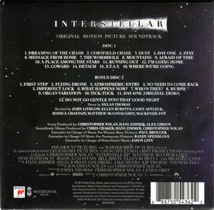 Illuminated Star Projection Edition Packaging includes: Illuminated Star Projection box with a light message that is able to be decoded, an extended booklet with behind the scenes scoring photos and over two hours of music with exclusive to this edition bonus material. Music content: Disc 1: Original motion picture soundtrack Disc 2: Bonus disc with over 35 minutes of music unavailable anywhere else. Track 2-13, "No Time For Caution," is an unlisted track. Online purchase also includes downloads to the original soundtrack in full downloadable MP3 format and in Z + App free DTS Headphone: X Surround Sound format, as heard in Hans Zimmer's studio.