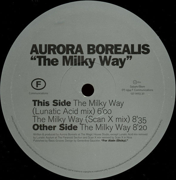 Published by Basic Groove. Written and produced at The Magic House Studio, except B1 remixed at the Paranoid Section, and B2 remixed in Nice. A Side plays at 45 RPM. B Side plays at 33 ⅓ RPM. (P) & (C) 1994 F Communications. Fabriqué en France. Housed in label sleeve with purple/white front sticker.