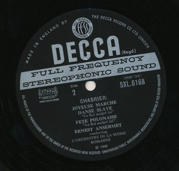 Second issue on Decca, ED2 "Wide Band" labels Grroved . ℗ 1965 on labels, © 1965 on sleeve