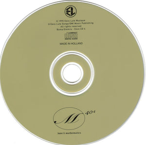 Thanks for your contributions, criticism or just being there: all collaborators on the album and Wayne Archbold, Flow Scotland, Steve Green, Marc van Herk, Frank van Hoof, Harold de Kinderen, Hanneke Schaars, Frank Scheepens and all at Sound & Vision, Antti Viitanen. Respect and inspiration: Paul Auster, Autechre, Clive Barker, Eric van den Broek, Paul Davies, Brian Eno, Darryl Fitton, Paul Frankland, Stephen Jay Gould, Richie Hawtin, Francois Kevorkian, Bill Laswell, Massive Attack, Metalheadz, Mo' Wax Posse, Ennio Morricone, Arvo Pärt, P.F.M., Photek, Plaid, Mark Pritchard & Tom Middleton, Scorn, David Sylvian, Talk Talk, Tricky, Leon de Winter and Hector Zazou. This album is dedicated to lovers and mathematicians worldwide. All recordings made at Virtual Image Productions. Catalog# (spine): eevo CD4 Catalog# (disc): Eevo CD 4 Catalog# (front insert): Eevo CD4 Back insert: ℗ & © 1995 Eevo Lute Muzique. Published by Eevo Lute Songs, a division of EMI Music Publishing Printed in Holland Disc: © 1995 Eevo Lute Muzique ℗ Eevo Lute Songs / EMI Music Publishing Made in Holland